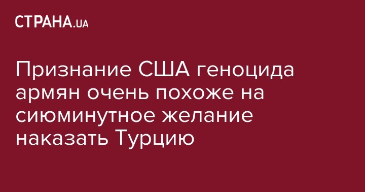 Кто скажет, что в основе таких важных решений, как признание геноцида армян не лежит чистая политика - я бы даже сказал, сиюминутное желание администрации США наказать Турцию за неимением других рычагов влияния - пусть первый бросит в меня камень. Трактовка чужой истории стала новым оружием в руках стареющих конкистадоров.