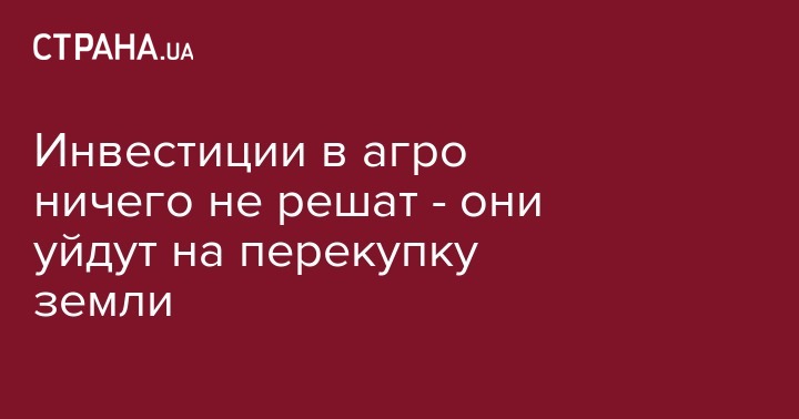 Когда у нас говорят инвестиции в рынок земли, то это в основном деньги в перекупку этой земли! Не более. Они не приведут к созданию рабочих мест, не создадут нового экспорта. Капитальные инвестиции будут отдельно, если будут, хотя я в этом сомневаюсь.