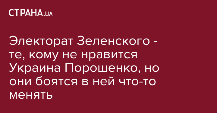 Электорат Зеленского создали те, кого не устраивает Украина Порошенко, но он боится что-то в ней изменить. Именно этим Зеленский сейчас и занимается. И он гробит страну, как наказал ему его основной избиратель. "Так не доставайся же ты никому!". И умирающая Катерина сказала "Спасибо!".
