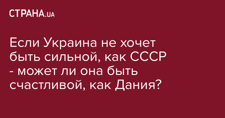 Допустим, нам такого "советского счастья" больше не надо. Но может ли Украина в таком случае быть счастливой как-то иначе - как Дания, например?