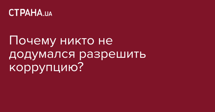 Почему никто не додумался разрешить коррупцию? Почему бы не узаконить ее и относиться к ней как к национальному колориту?
