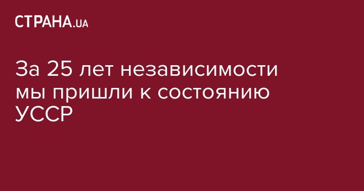 Украина прошла 25 летний цикл независимости, и пришла к его началу. Вместе с другими странами экс-СССР мы стали независимыми, но что то пошло не так. Сегодня наша страна менее суверенна и субьектна, чем 5, 10 и 15 лет назад. Уровень суверенитета Украины сегодня можно сравнить с 1990 г., когда в УССР была принята "декларация независимости", но центр политического и экономическиго контроля находился в Москве, и национальная элита полностью зависела от него.