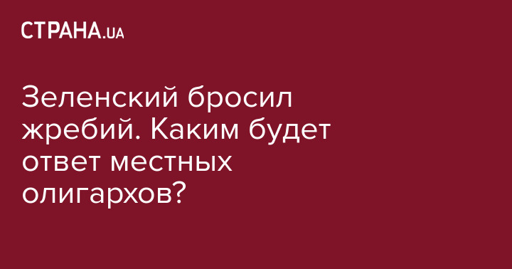 ЗЕЛЕНСКИМ ЖРЕБИЙ БРОШЕН, КАКИМ БУДЕТ ОТВЕТ МЕСТНЫХ ОЛИГАРХОВ?