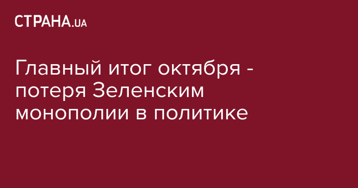 Если подводить итоги последнего месяца, то, мне кажется, главным итогом стала потеря Зеленским монополии на политику в стране.