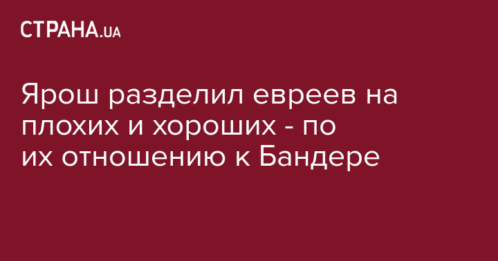 Ярошу не нравится посланник еврейского государства, так как он осудил марш в честь Бандеры. В своем посте Ярош разделил евреев на хороших почитателей Бандеры, которые "на украинской стороне", и плохих, которые не чтят своих убийц, - их он вообще не упомянул.