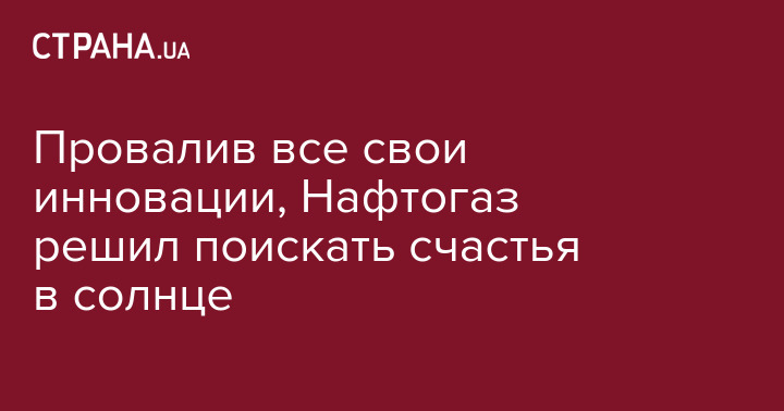 На фоні повного провалу всіх своїх «іновацій» в основній газовій сфері - видобуток, транзит, анбандлінг, газ-тепло, Нафтогаз вирішив пошукати щастя в сонці.