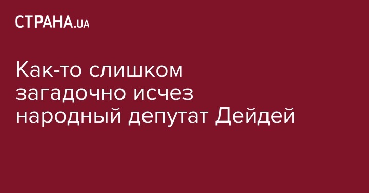 Вже тиждень як зник народний депутат України Євген Дейдей. На дзвінки журналістів не відповідає, у Верховній Раді та комітетах не з’являється, на інтерв’ю 112 каналу не прийшов, Фейсбук не оновлює. Ніхто не в курсі, що трапилось з народним обранцем? Кажуть, у нього якась депресія…