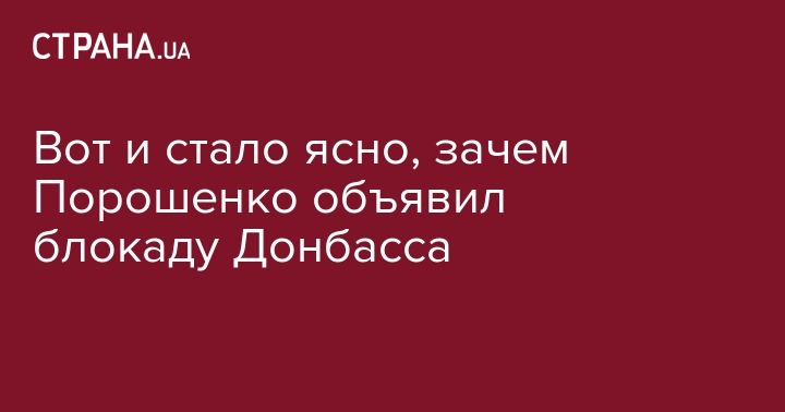 Тепер я розумію, з якою метою Петро Порошенко оголосив блокаду на Сході України. Бо всі інші версії до сьогоднішнього дня виглядали притягнутими за вуха.