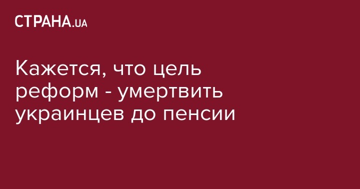 В Украине медицинская реформа идёт в тесной связке с пенсионной. Главная цель - лишить людей возможности получать медицинские услуги и создать им такие условия, чтобы они умирали ДО выхода на пенсию.