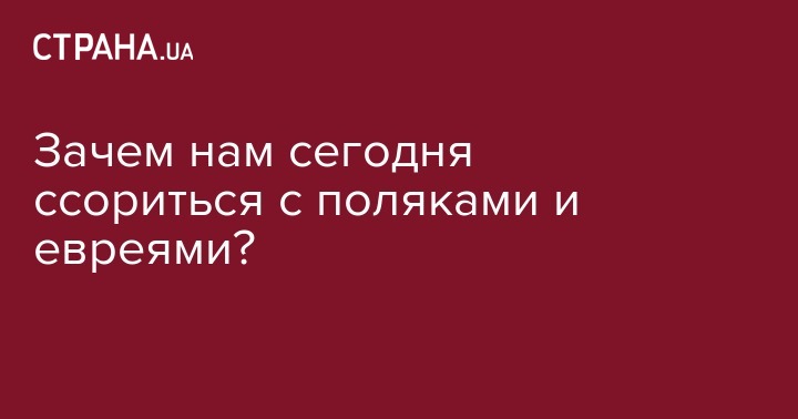 Почему бы нам не оставить наши расхождения с польскими друзьями в прошлом? К чему тащить в нынешний день давние национальные обиды?