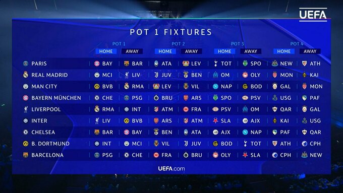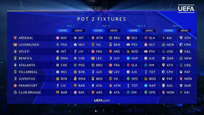 Соперники определены жеребьевкой по специальной компьютерной системе. Каждый клуб проведет по два матча с представителями каждой корзины – один дома и один на выезде.