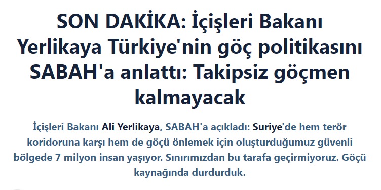 Про це розповів виданню Sabah міністр внутрішніх справ країни Алі Ерлікай.