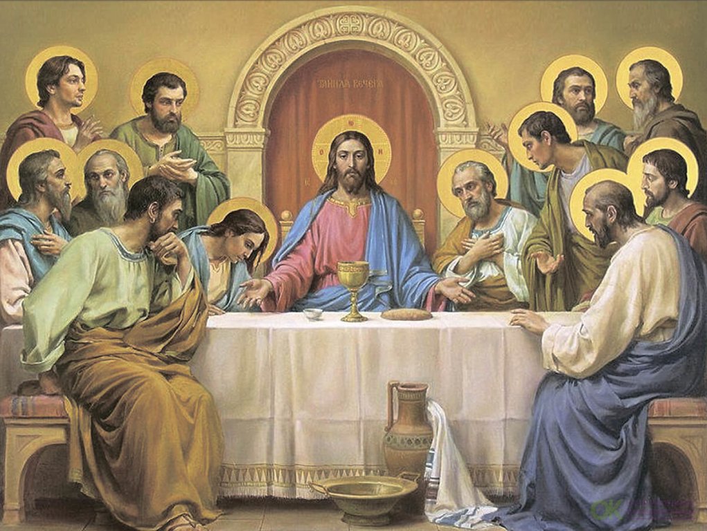 Він встановив Таїнство Євхаристії — причастя, наказавши їсти хліб і вино, як Тіло і Кров Його. Передбачив зраду Юди Іскаріота. Після вечора Христос вирушив до Гефсиманського саду, де молився до кривавого поту, знаючи про майбутні муки.