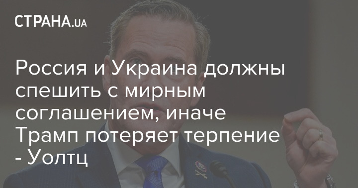 Росія та Україна мають поспішати з мирною угодою, інакше Трамп втратить терпіння - Уолтц