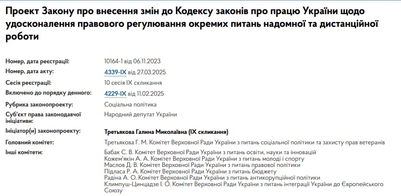 Президент Володимир Зеленський підписав закон про внесення змін до Кодексу законів про працю України щодо вдосконалення правового регулювання окремих питань надомної та дистанційної роботи.