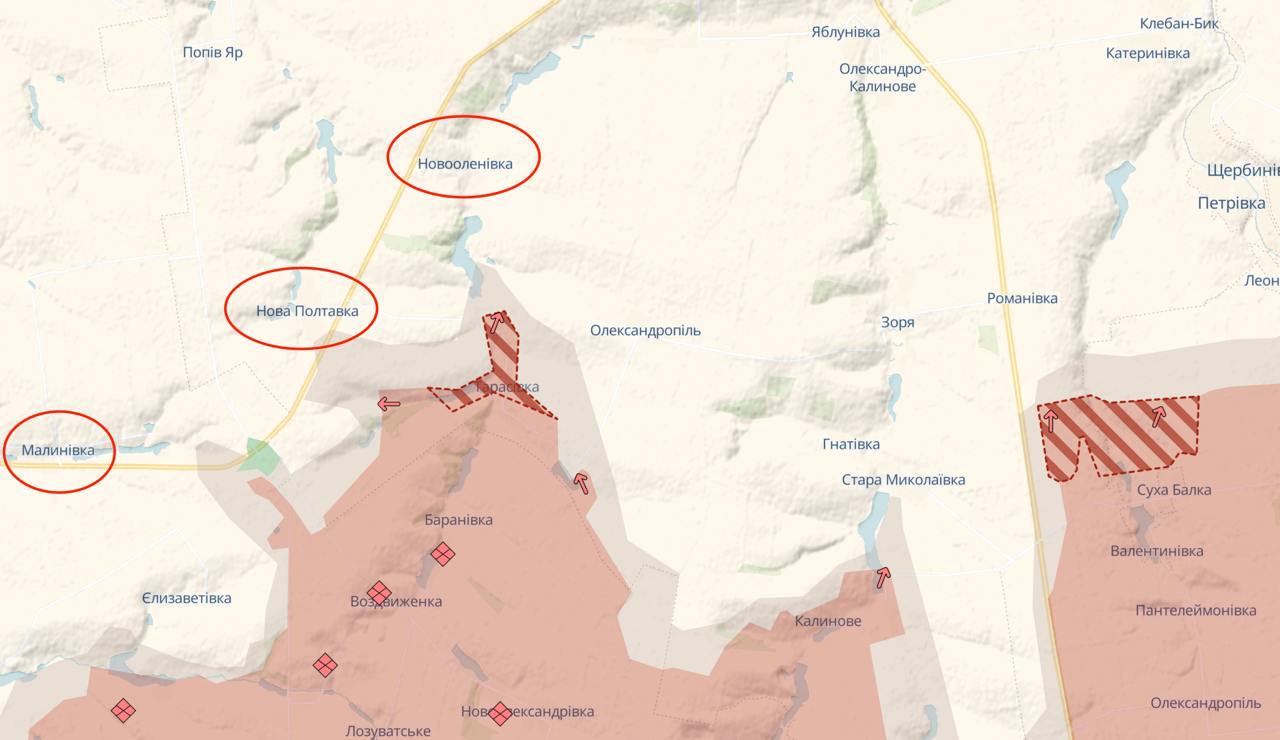 РФ захопила Тарасівку, намагається заходити до Новооленівки на північ і вже заходила до Нової Полтавки по той бік траси.