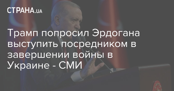 Президент США Дональд Трамп попросив турецького лідера Реджепа Таїпа Ердогана виступити посередником після завершення війни в Україні.