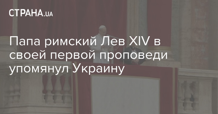Папа римський Лев XIV під час своєї першої проповіді закликав до досягнення "тривалого та справжнього світу" в Україні, а також негайного припинення вогню в секторі Гази та надання допомоги його населенню.