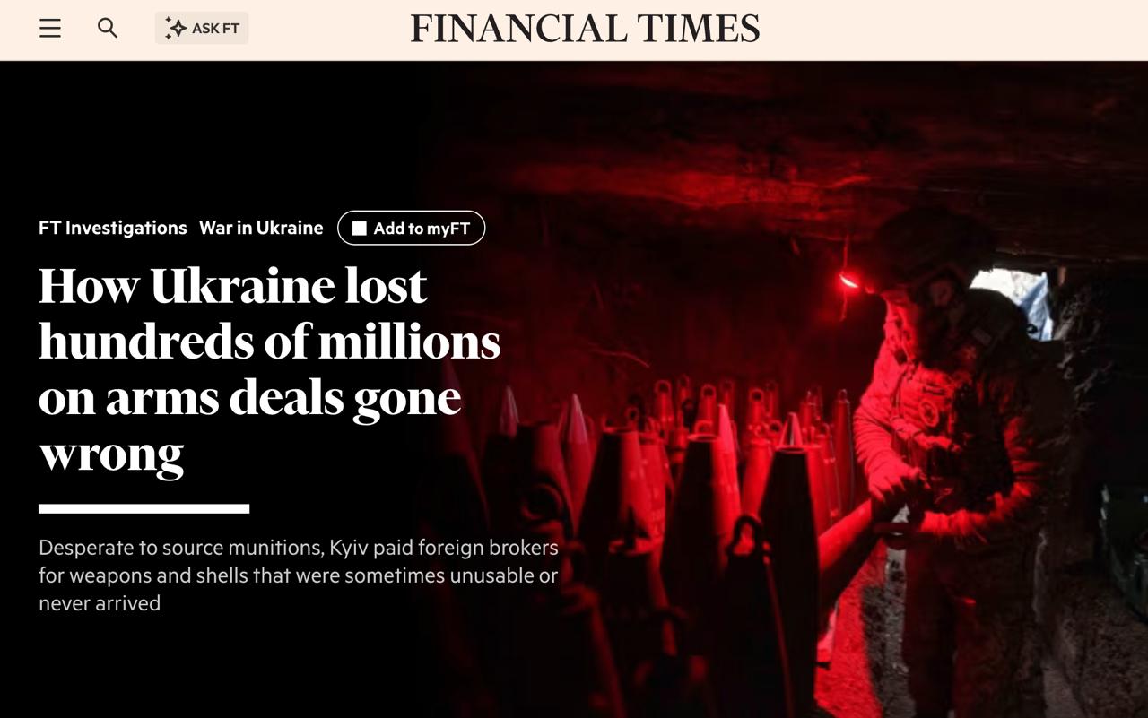 Відчайдушно намагаючись отримати боєприпаси, Київ платив іноземним посередникам за зброю та снаряди, які іноді виявлялися непридатними для використання чи взагалі не прибували. Деколи це були маловідомі компанії, які отримували авансом великі суми.