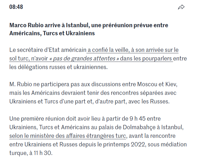 Водночас держсекретар США Марко Рубіо вже прибув до Стамбула, повідомляє Le Monde.