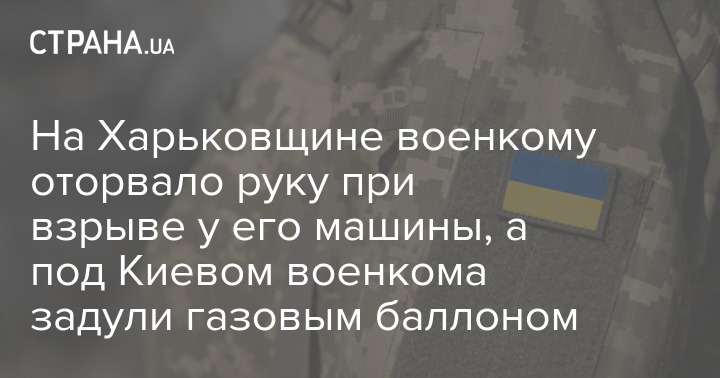 На Харківщині військовому відірвало руку під час вибуху біля його машини, а під Києвом військкома задули газовим балоном