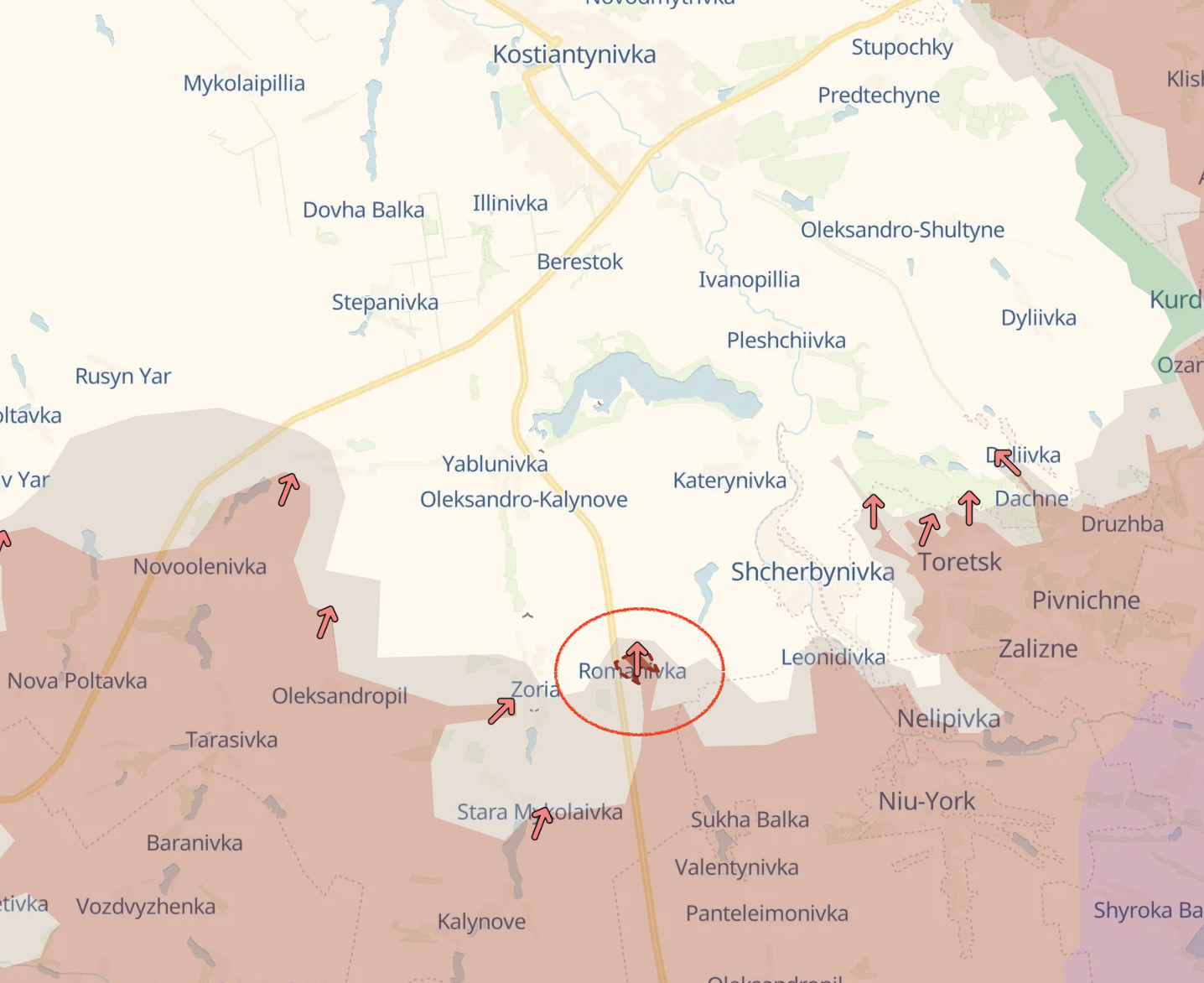 Армія РФ захопила Романівку на Костянтинівському напрямі, повідомляє військовий Deep State.