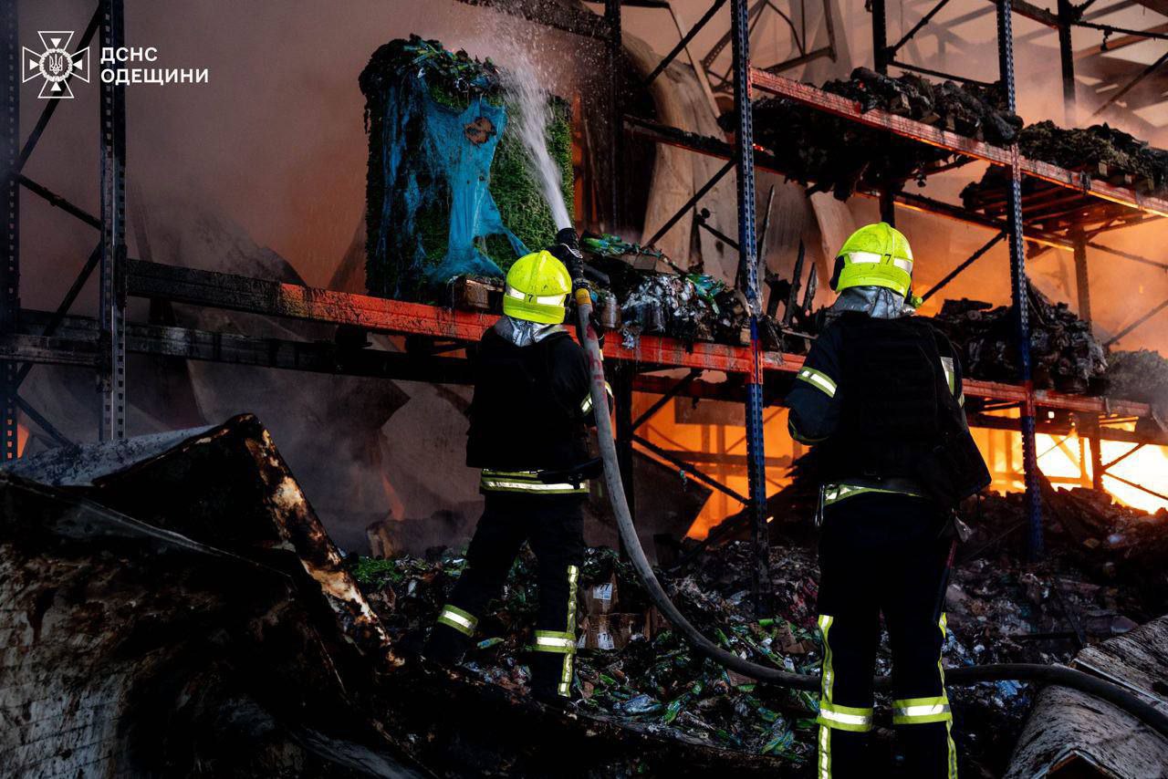 7.54 В Одесі після удару "Шахедами" була низка прильотів. У тому числі горів склад із продуктами харчування, як повідомляє ДСНС.