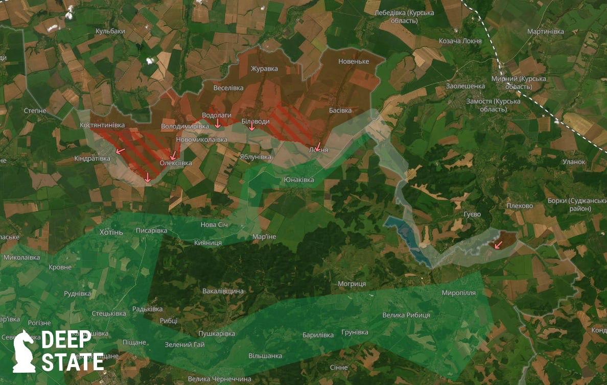 8.03 Росіяни на Сумщині захопили села Андріївка та Водологи, повідомляє військовий паблік Deep State.