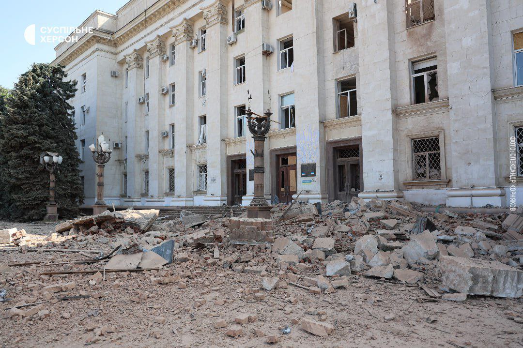 10:44 Ще кадри зруйнованої авіабомбами будівлі Херсонської ОВ.