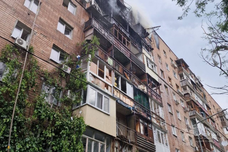 В Основ'янівському районі зафіксовано попадання БпЛА до 9-ти поверхового житлового будинку. Відбулося загоряння 12 квартир на 7, 8 та 9-му поверсі на площі 600 квадратних метрів.