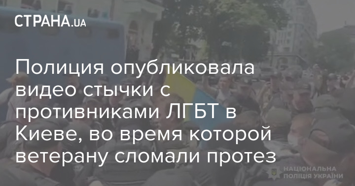 Поліція Києва опублікувала відео сутички із противниками ЛГБТ учора у Києві. Заявляється, що під час бійки один з опонентів ударив поліцейського протезом руки.