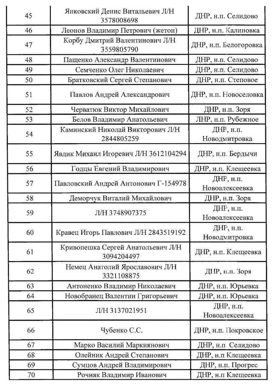 Чиновник виклав прізвища 121 військового, які загинули, як випливає з таблиць, на різних ділянках фронту від Курської до Донецької області. Судячи з усього, тіла були зібрані в різні періоди, оскільки в ньому значаться загиблі, зокрема, з Авдіївки, де основні бої точилися в 2023-2024 роках.