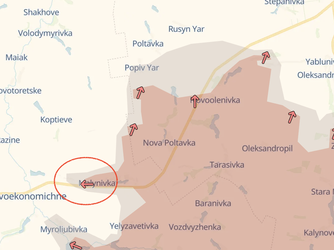 DS пише про просування росіян на південь від Коптєва - в Малинівці.