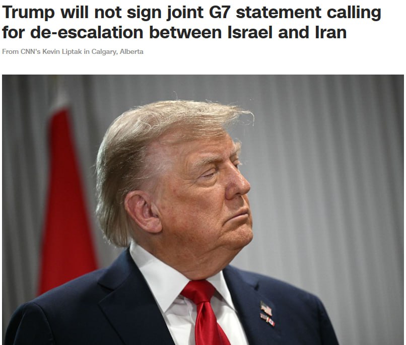 Президент США Дональд Трамп не підпише спільну заяву країн G7 ("Велика сімка"), яка закликає до деескалації відносин між Ізраїлем та Іраном.