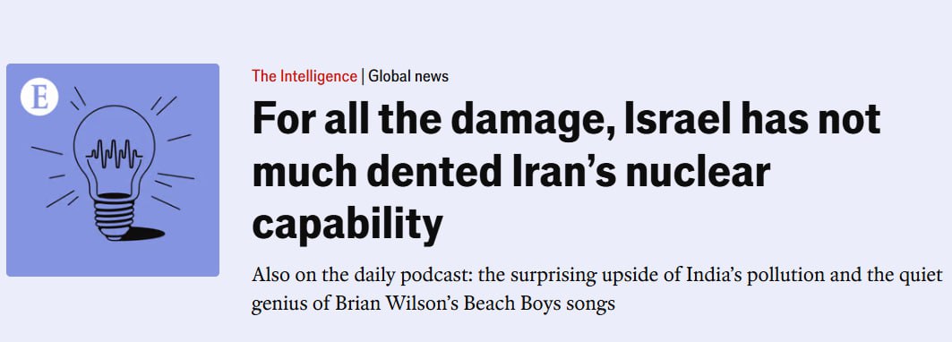 The Economist вважає, що для Ізраїлю зараз головне зберегти імпульс: якщо йому вдасться підтримувати видимість успіху, це може підштовхнути президента Дональда Трампа до участі у війні. Але якщо темп руйнувань ядерних об'єктів знизиться, а кількість жертв зросте, Трамп може спробувати закінчити війну до того, як Ізраїль досягне своєї мети.