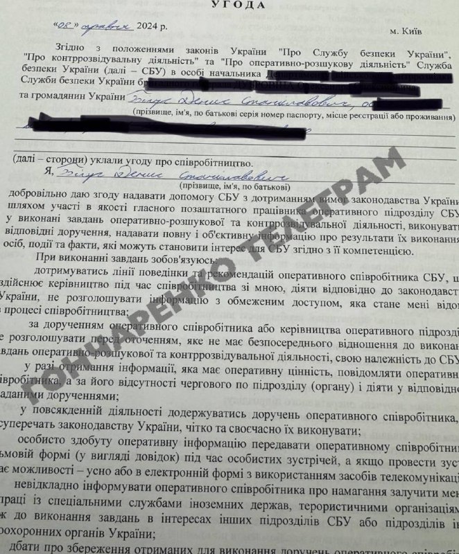 У першому документі Бігус добровільно погоджується допомагати СБУ шляхом виконання доручень та завдань оперативно-розшукової та контррозвідувальної діяльності, а також звітувати про результати виконання.