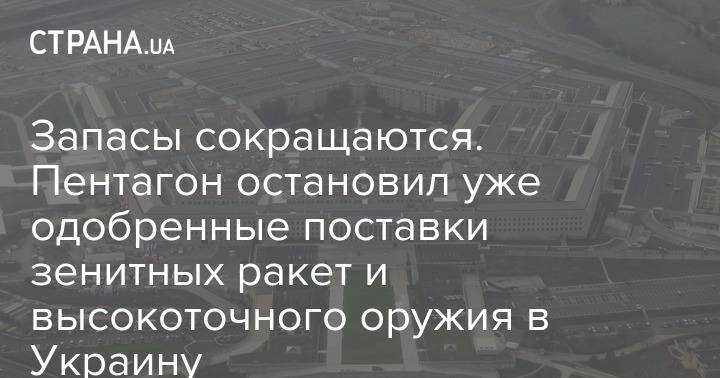 Пентагон зупинив раніше схвалені постачання зенітних ракет і деяких інших високоточних боєприпасів в Україну через побоювання, що запаси зброї в США надто скоротилися.