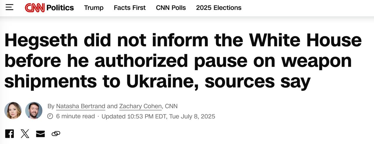 Днями ЗМІ вже писали, що рішення про заморожування військової допомоги для України ухвалив особисто міністр оборони Хегсет, і воно стало несподіванкою для Державного департаменту, членів конгресу, української влади та європейських союзників.
