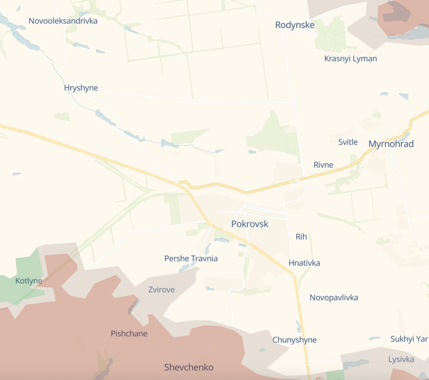 Військовий "Мучний" пише, що на південний захід від Покровська росіяни захопили село Перше Травня, яке примикає до Покровська. Звідси війська РФ роблять спроби прориву захід, щоб перерізати трасу на Павлоград.