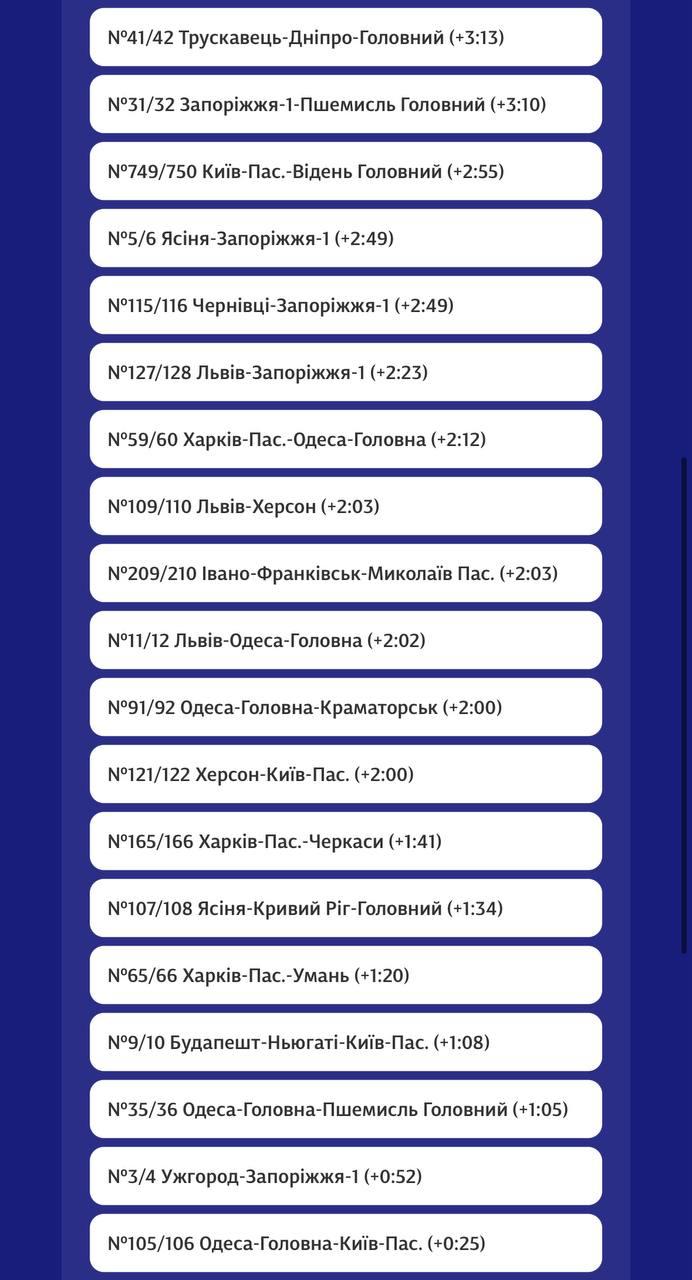 8.34 Затримки понад п'ять годин. Оновлений графік поїздів "Укрзалізниці" після нічного обстрілу.