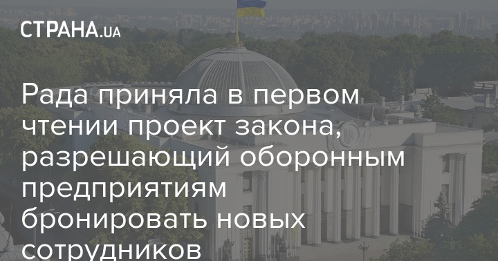 Верховна Рада України підтримала у першому читанні законопроект № 13335, який дозволяє оборонним підприємствам зі статусом критичності одразу бронювати нових співробітників на 45 днів, щоб їх не мобілізували при оформленні, а вже після роботи над оформленням постійної броні.