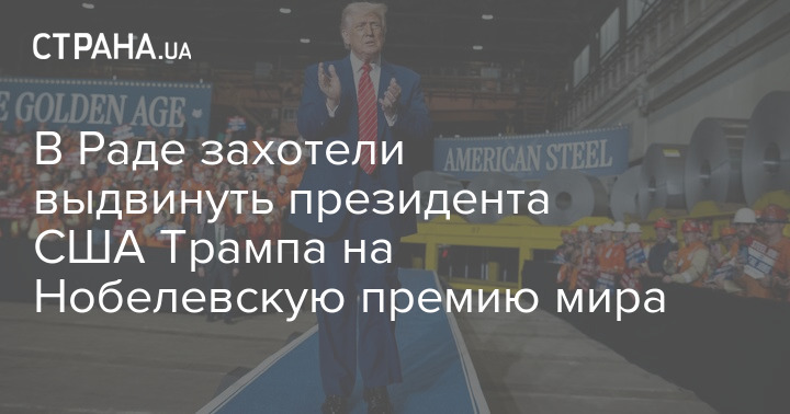 У Верховній Раді України пропонують висунути президента США Дональда Трампа на здобуття Нобелівської премії миру.