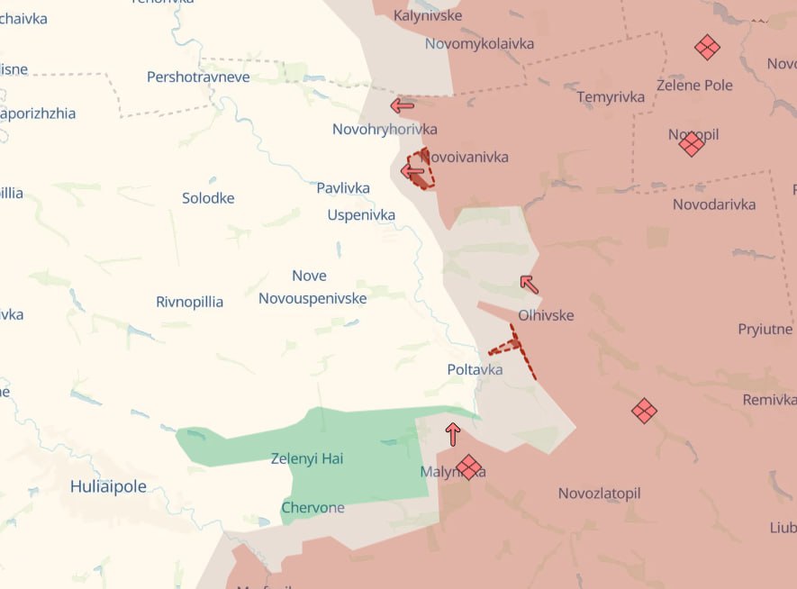 Раніше ми підбивали підсумки попереднього дня. За даними українського військового паблік Deep State, армія РФ захопила Полтавку на константинівському напрямку. Цей поступ йде на схід від російського виступу в районі Добропілля. Також Deep State повідомив про просування російських військ у районі Новоіванівки на півдні Дніпропетровської області.