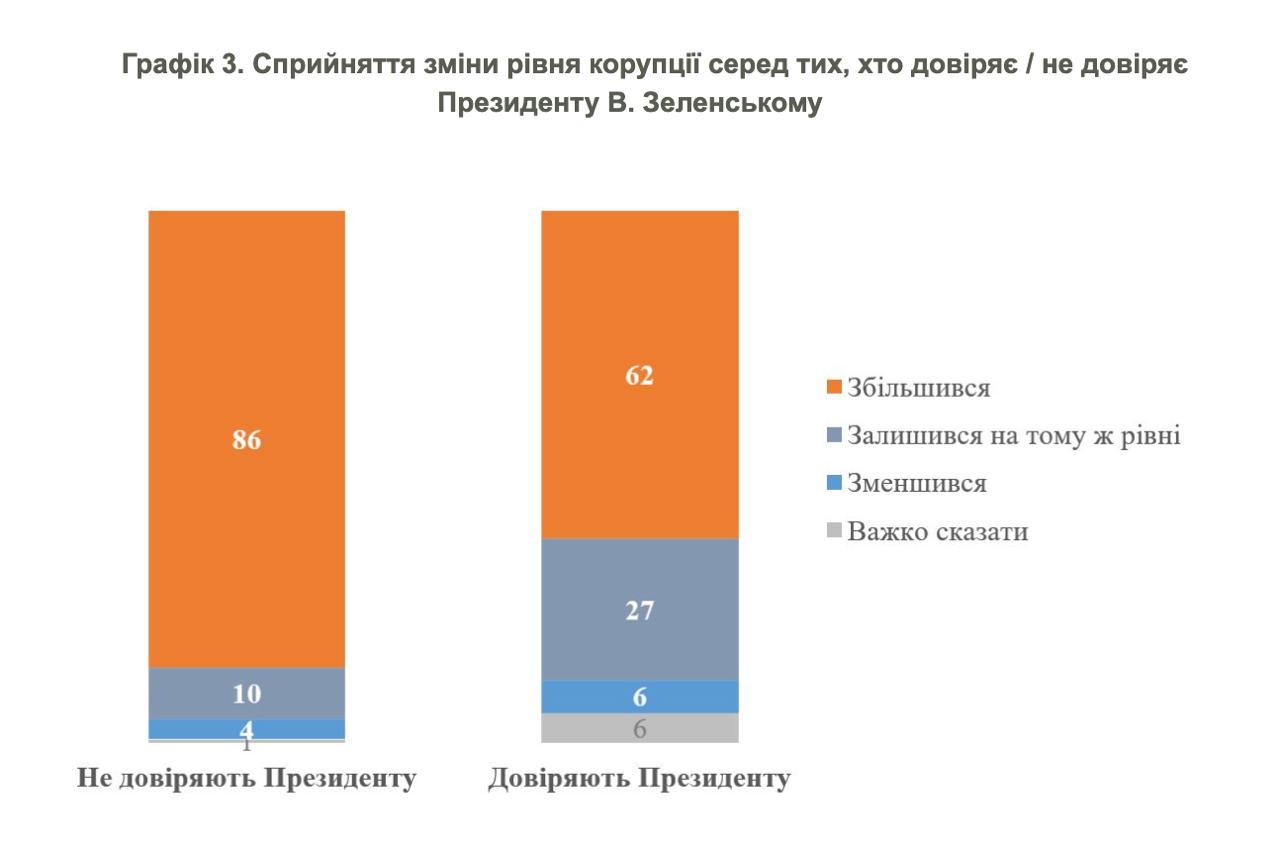 Серед тих опитаних, хто довіряє президентові України Володимиру Зеленському, лише 6% вважають, що корупція в країні поменшала.