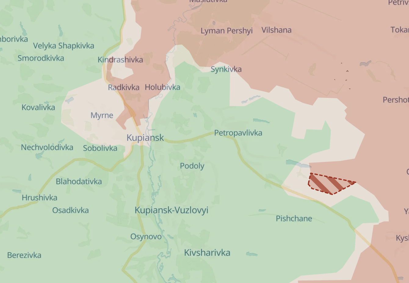 Ще на північ від росіяни, судячи з карти Deep State, просунулися в районі Піщаного на схід від Куп'янська.