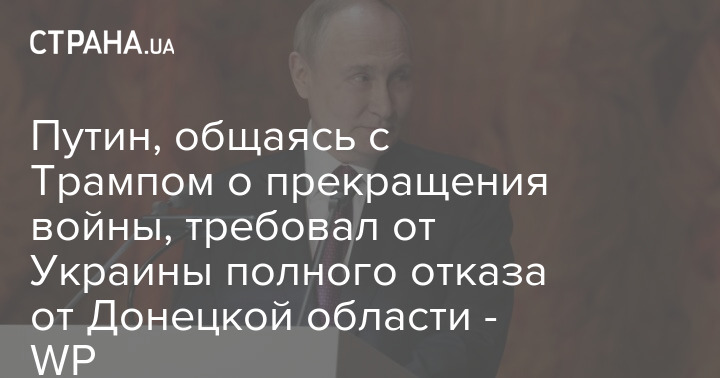 Під час телефонної розмови з президентом США Дональдом Трампом Володимир Путін вимагає від України повної відмови від Донецької області як умови припинення війни.