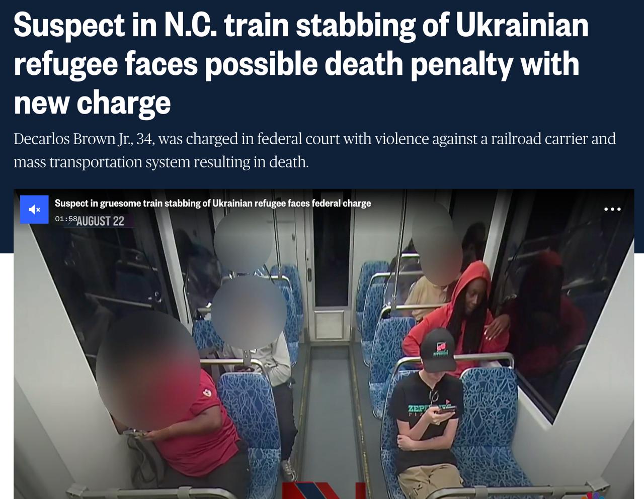 Вбивці 23-річної української біженки Ірини Заруцької в США загрожує страта. Журі присяжних звинуватило Декарлоса Брауна-молодшого - застосування насильства щодо залізничного перевізника та системи громадського транспорту, що спричинило смерть.