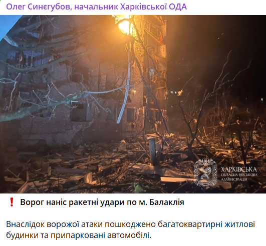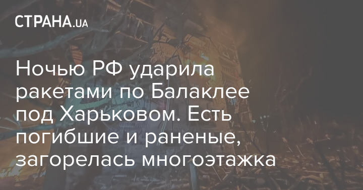 Вночі росіяни завдали ракетного удару по Балаклії на Харківщині. Є загиблі та поранені, пошкоджені житлові будинки, сталося спалах у багатоповерхівці.