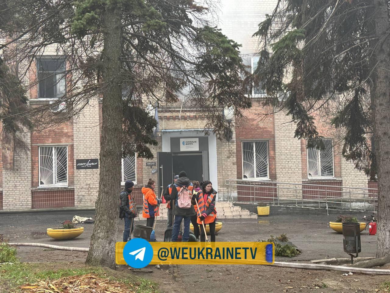З'явилися й інші кадри прильотів по телецентру Дніпра, де знаходяться офіси медіакомпаній, а також знімки наслідків прильотів.
