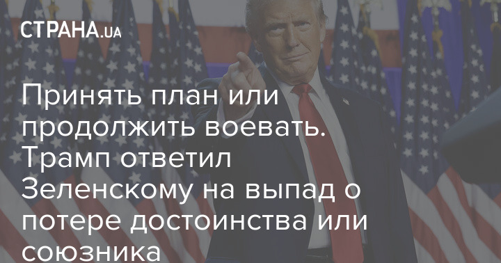 Президент США Дональд Трамп відповів Володимиру Зеленському, який заявив, що Україні доводиться обирати "між гідністю та США". Він однозначно дав зрозуміти, що Київ має прийняти надісланий із Вашингтона мирний план.